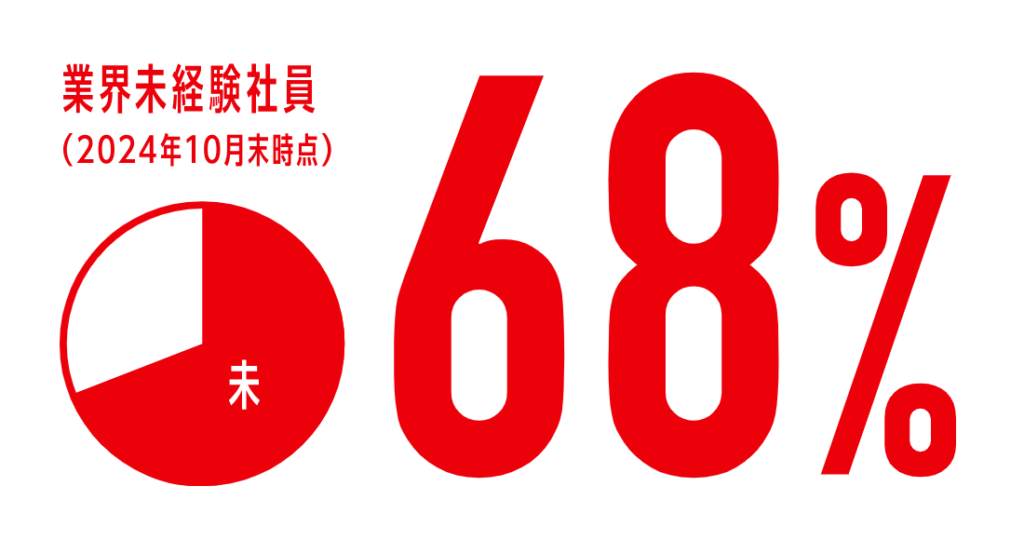在籍している社員の68%※1が業界未経験で入社し、現場の最前線で活躍中!はじめてのEC/通販業界で仕事ができる理由のひとつが、入社後に受講する充実した研修プログラムにあります。