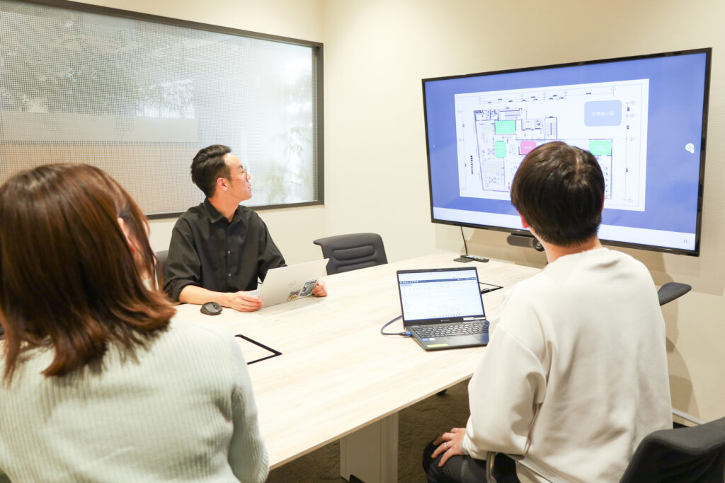 何か困ったことが起きたらすぐに相談しやすい環境を整えているのも、会社の組織風土のひとつ。Web上での研修と併せた対面での研修もバランスよく盛り込み、新しく入社したメンバーへのサポート体制が部署の垣根を超えて構築されています。