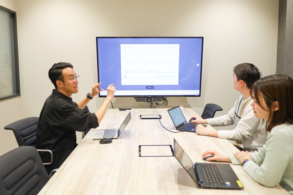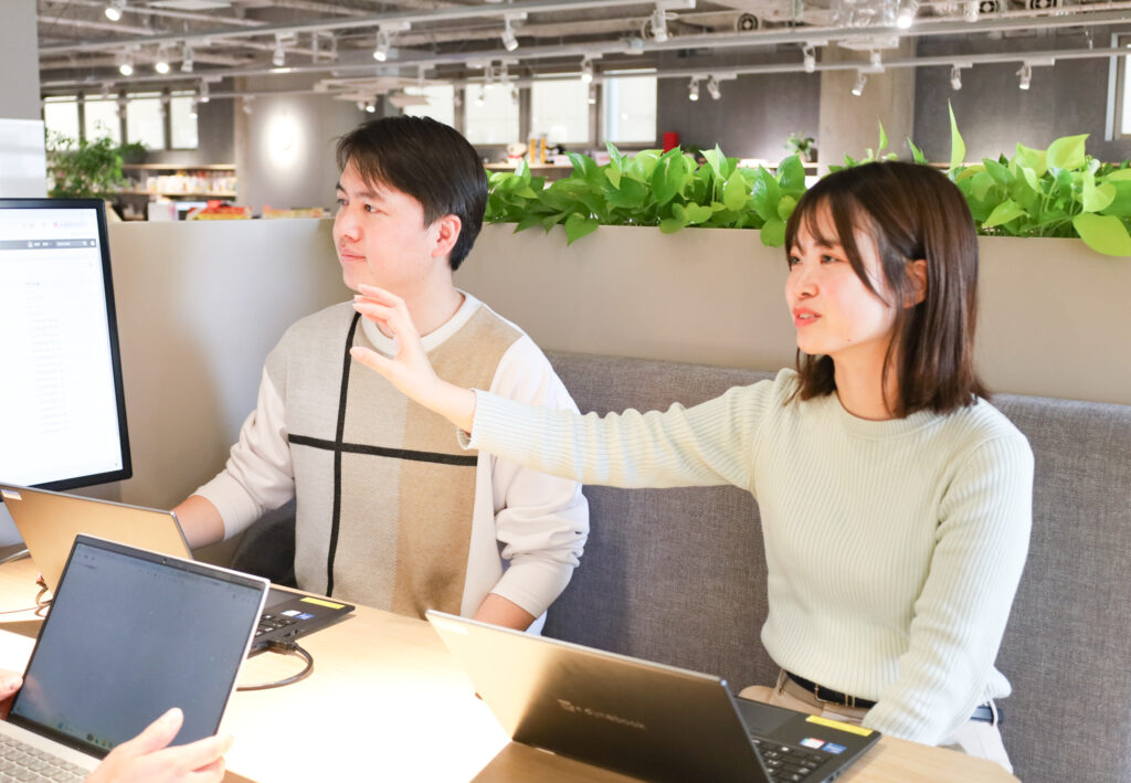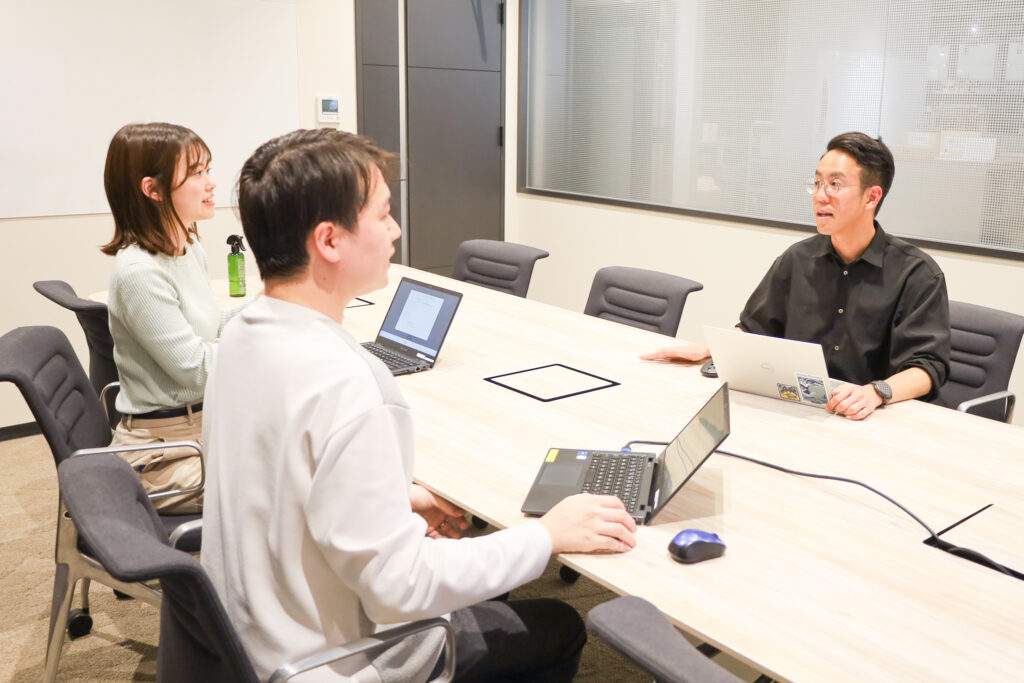 研修と並行しながら実際に担当業務が割り振られ、適宜やり方のレクチャーやフィードバックを受けつつ、より実践的に仕事を覚えていくことが可能です。任せっぱなしで放置されることはなく、部署によっては定期的に面談の時間を設け、日々の進捗や困ったことがないかのヒアリングをしています。
