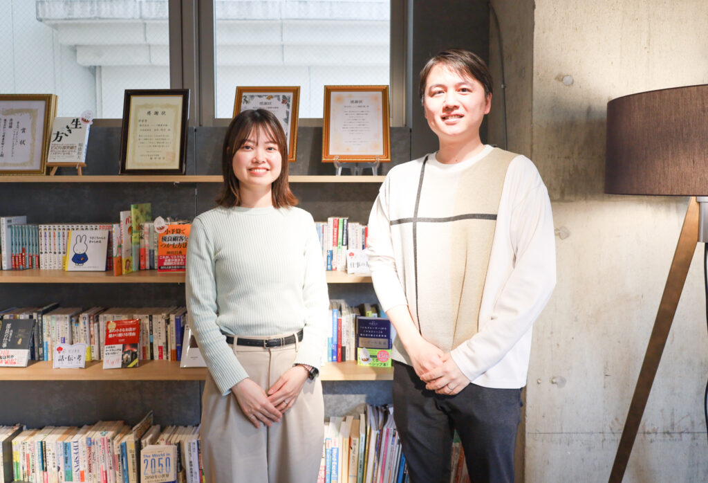 現在ハーブ健康本舗が準備している入社後研修について、実際に体験しながら調査することに!人事・総務に所属している山川・高原に教えてもらいました。