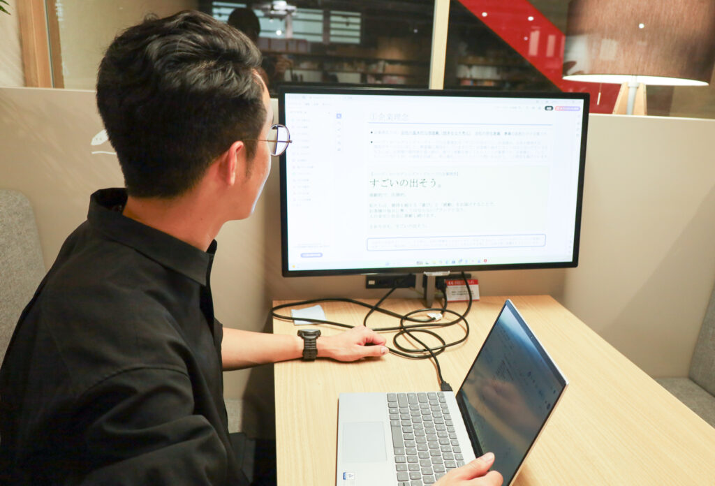 ほかの研修と同様、トピックごとに資料がまとめられているのに加えて、いつでも視聴できる説明動画が用意されているので、本格的に業務が始まった後でも研修内容を見返して学ぶことが可能です。とくに企画職のメンバーにとっては、仕事に直結するコアなノウハウがぎっしり詰まっているので、手元にマニュアルを準備して見返しながら業務を進めているメンバーも少なくありません。